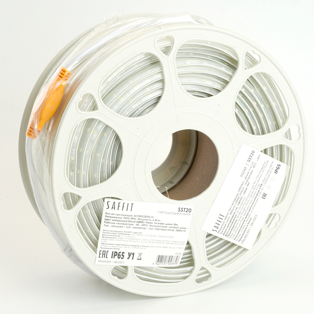 55244 - Лента светодиодная 220V SAFFIT SST20 , 60*SMD2835, 6W/m, IP65, 4000К (нейтральный белый)В наличии