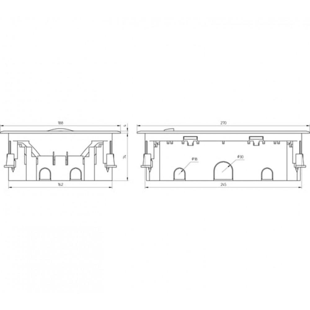 70062 - Лючки в пол для розеток в пол на 6 постов (45х45 мм), пластиковые, 270х185х80, LUK/6 с суппортом и коробкой (70060+70160), ЭкопластВ наличии