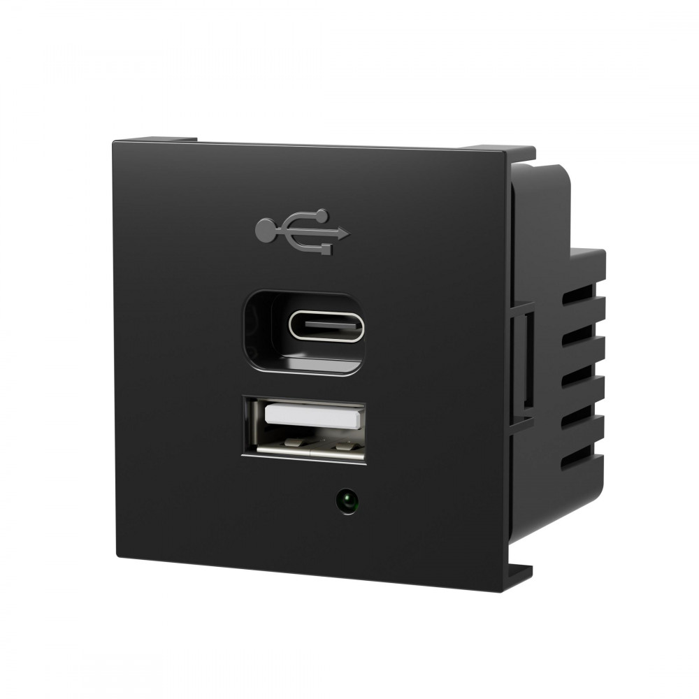 857908 - Розетка модульная высокоскоростная USB 45х45мм (Type А+С), 4,2 А, 5 В, 21 Вт (черн.) LK45В наличии