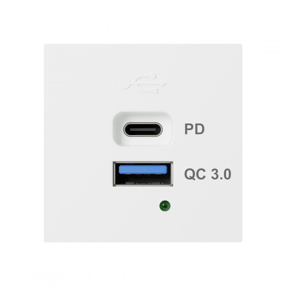 858104 - Розетка модульная высокоскоростная USB 45х45мм (Type А+С), протоколы QC 3.0, PD, 20 Вт. (бел.) LK45В наличии