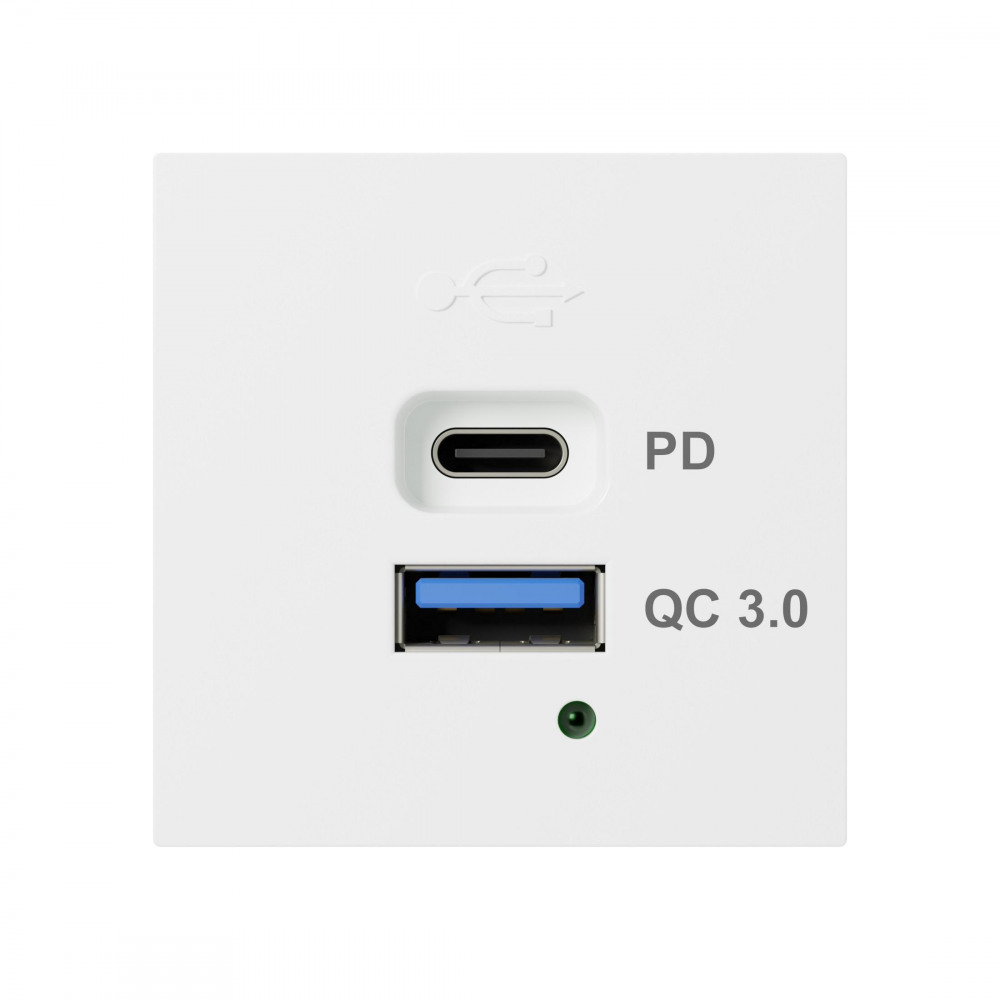 858304 - Розетка модульная высокоскоростная USB 45х45мм (Type А+С), протоколы QC 3.0, PD, 65 Вт. (бел.) LK45В наличии