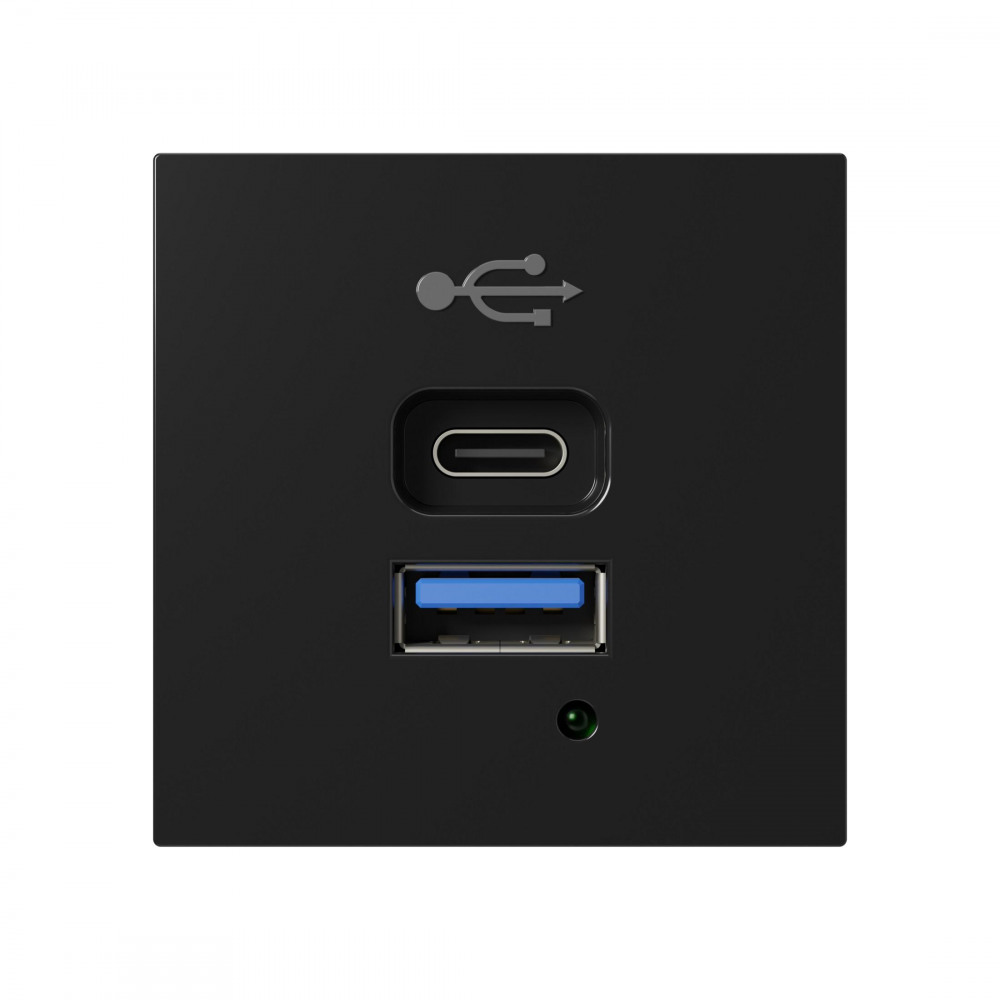 858308 - Розетка модульная высокоскоростная USB 45х45мм (Type А+С), протоколы QC 3.0, PD, 65 Вт. (черн.) LK45В наличии