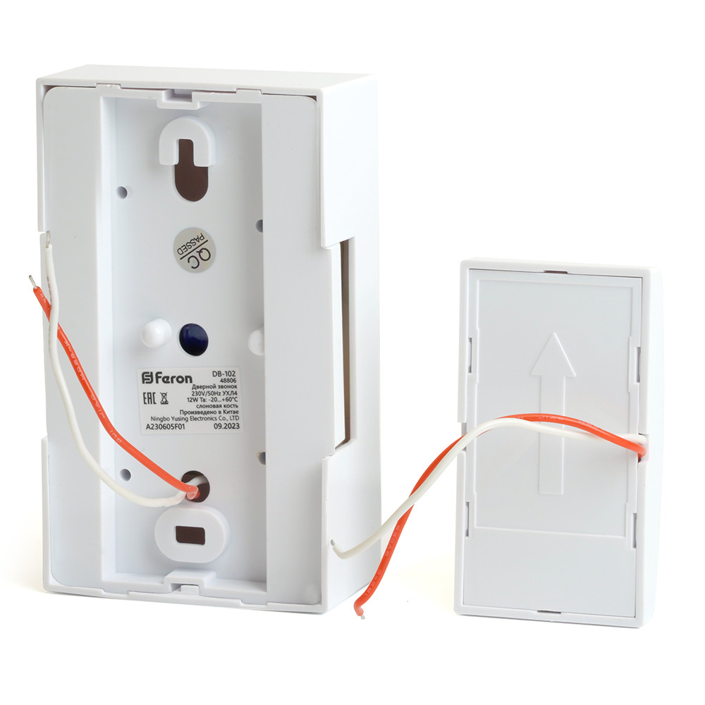 48806 - Звонок с кнопкой проводной Feron DB-102 электромеханический белый 230V 119х70х37ммВ наличии
