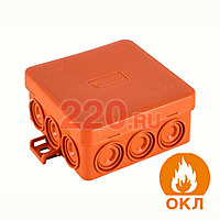 Коробка огн. E60-E90, о/п 100х100х55, без галогена, 6 вых., IP55, 6P, (1, 5-10 мм2), цвет оранж, JBS100, Экопласт