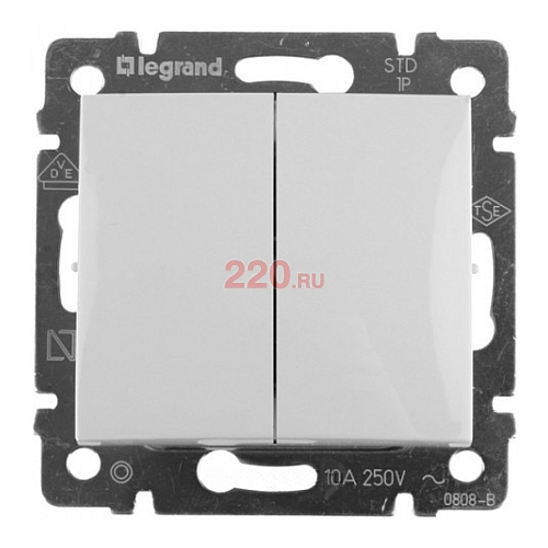 LN-774405 - Выключатель двухклавишный Legrand Valena БелыйВ наличии