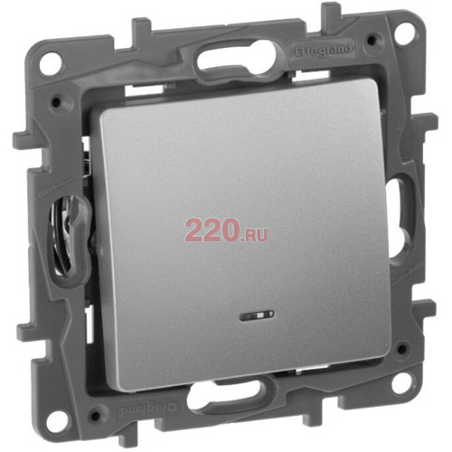 LN-672415 - Переключатель одноклавишный с подсветкой - 10 A - 250 В~ цвет - алюминий, Legrand EtikaВ наличии