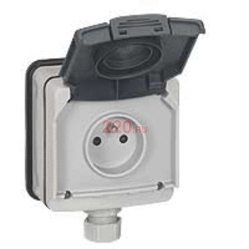 LN-090466 - Plexo IP66 Розетка 2К+З (с заземлением) влагозащищенная в комплекте с коробкой, 16А 250В~, цвет серый, LegrandПод заказ