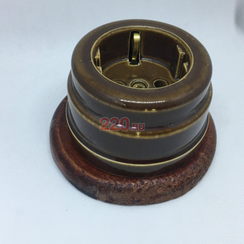 Z24-86 - Ретро розетка керамическая для открытой проводки, с заземлением, «Карамель», темная подложка.В наличии