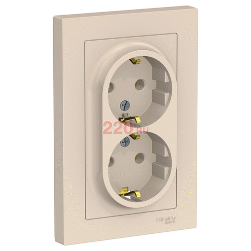 ATN000224 - Розетка с/з двойная, 16А, в сборе, цвет — бежевый, SE AtlasDesignВ наличии
