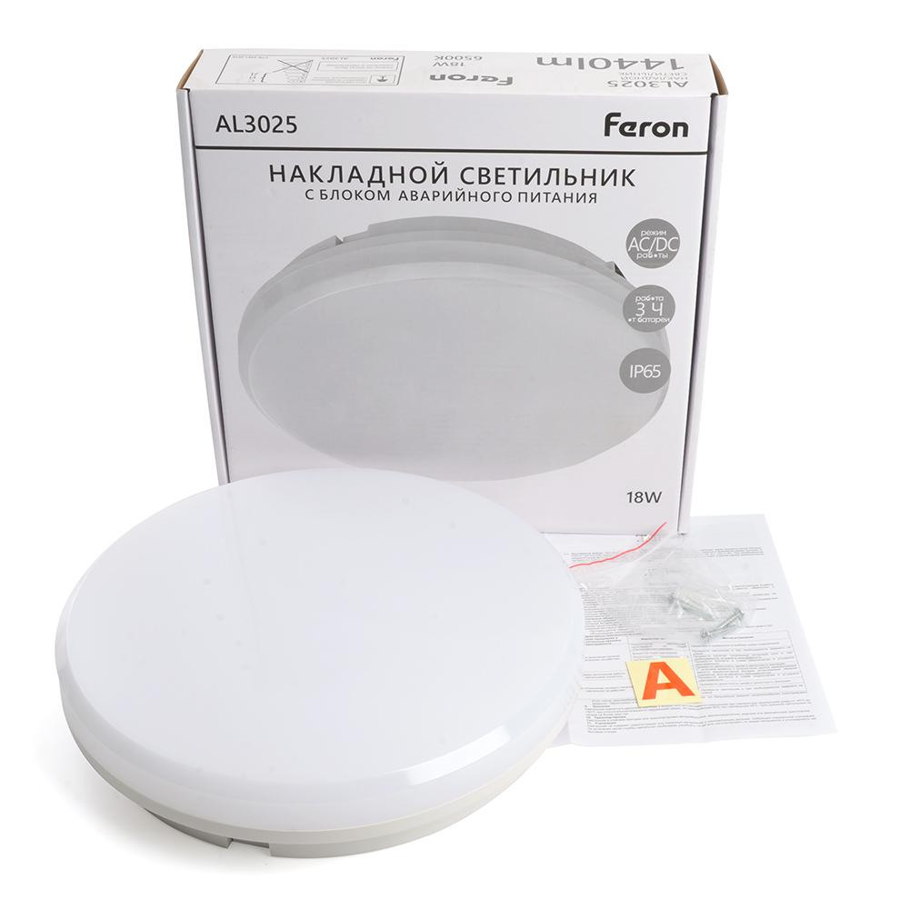 48296 - Светильник светодиодный Feron AL3025 с БАП в пластиковом корпусе 18W 6500K IP65 белыйВ наличии