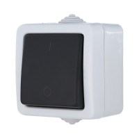 80003 - Выключатель одноклавишный с 2 мест (сх.6), IP54 10A (сер.)В наличии